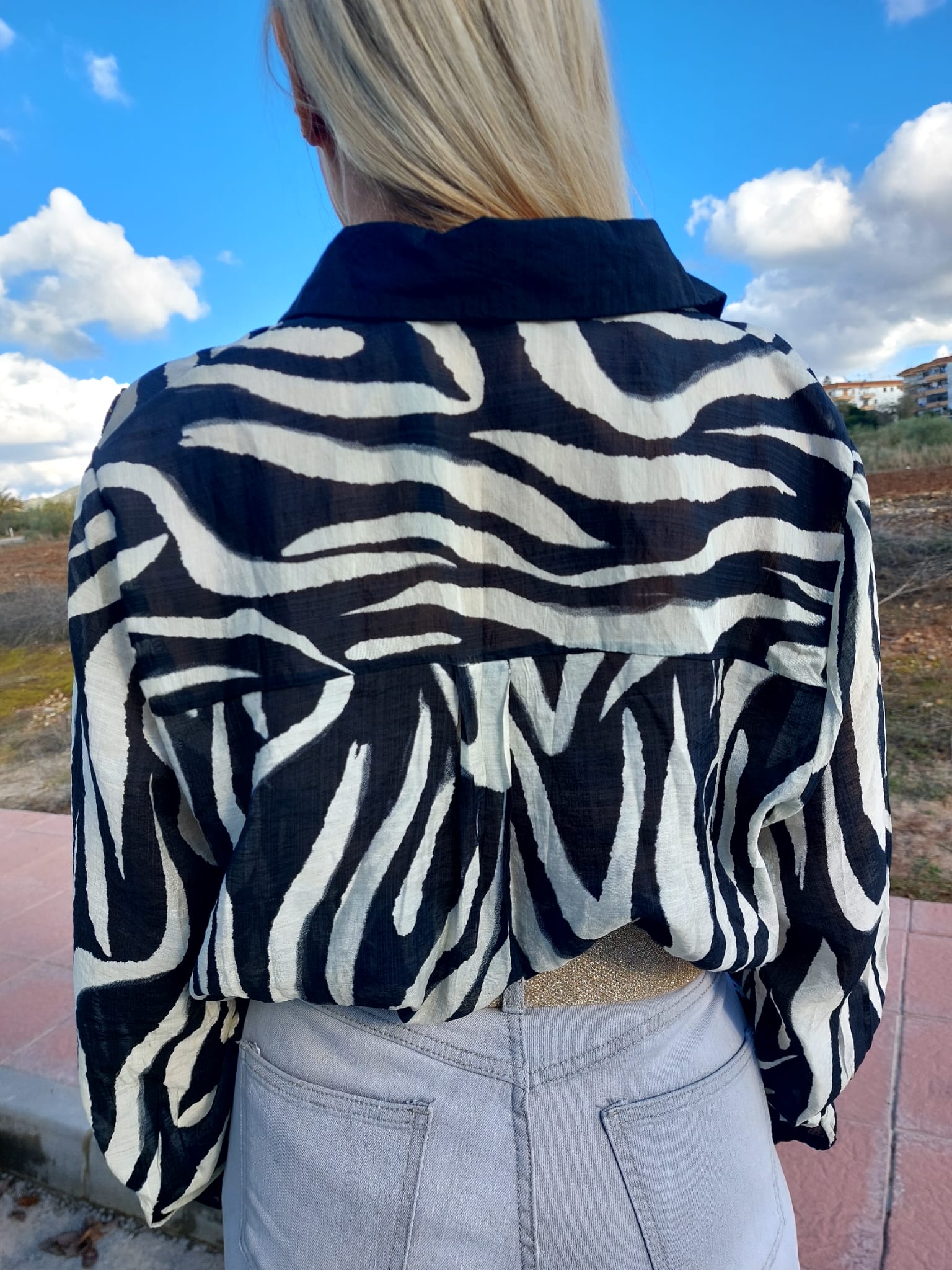 CAMISA ESTILO CEBRA CON BRILLOS